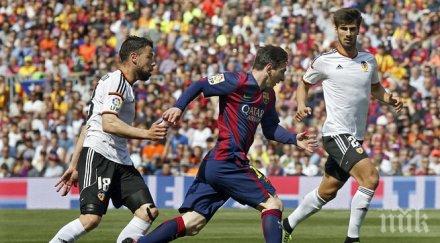 Меси и Суарес пак герои за Барса при победа над Валенсия