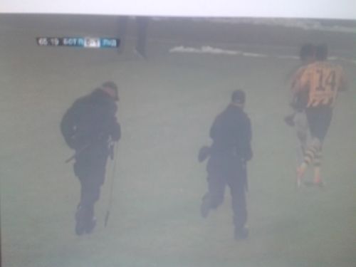 Веднага след инцидента привърженици на жълточерните нахлуха на стадиона и се наложи Веселин Минев да се изявява като полицай и да ги залавя.