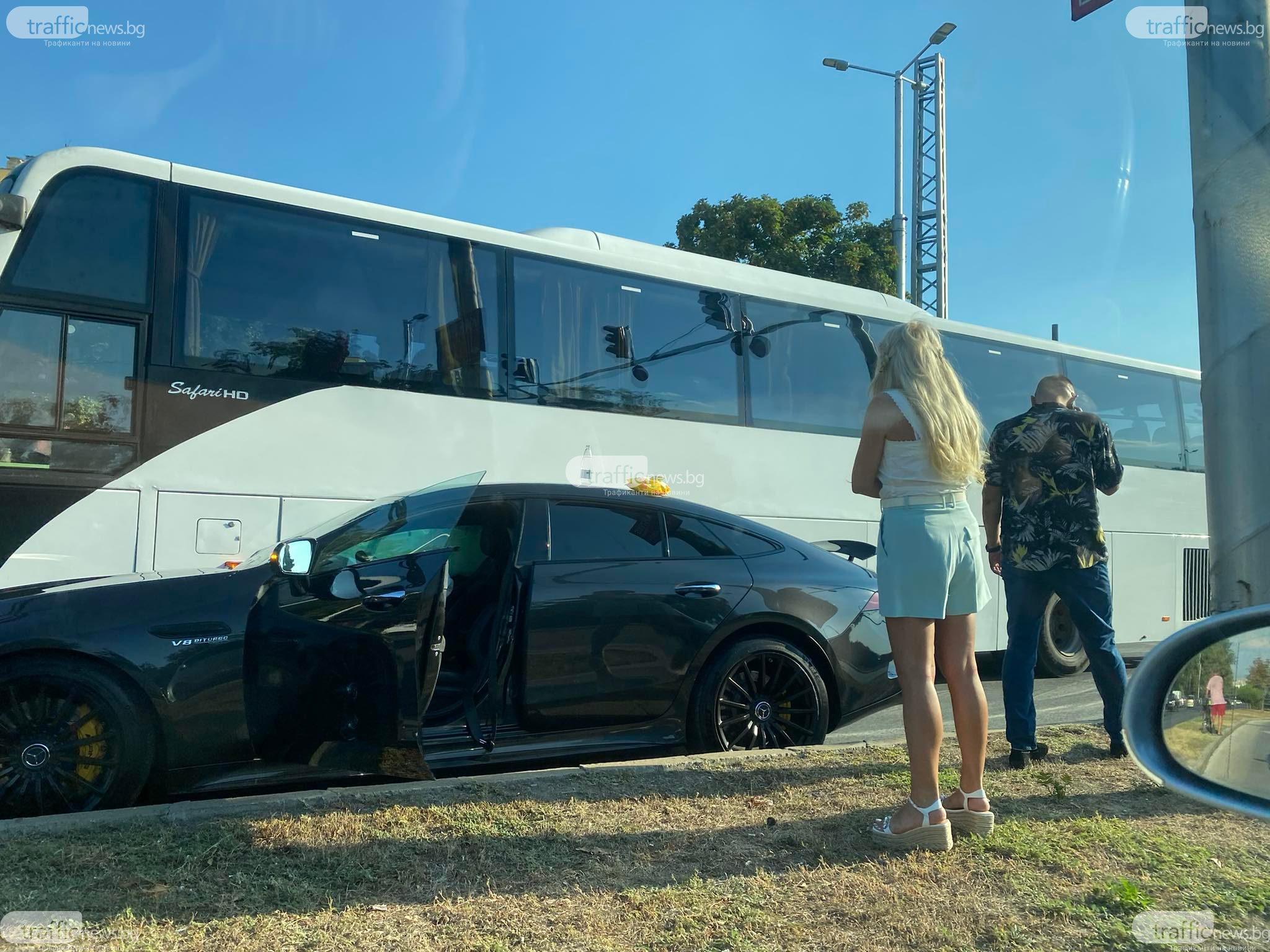 Лъскав мерцедес и автобус се удариха и предизвикаха огромно задръстване на бул. „Цариградско шосе”, в посока изхода на града.
