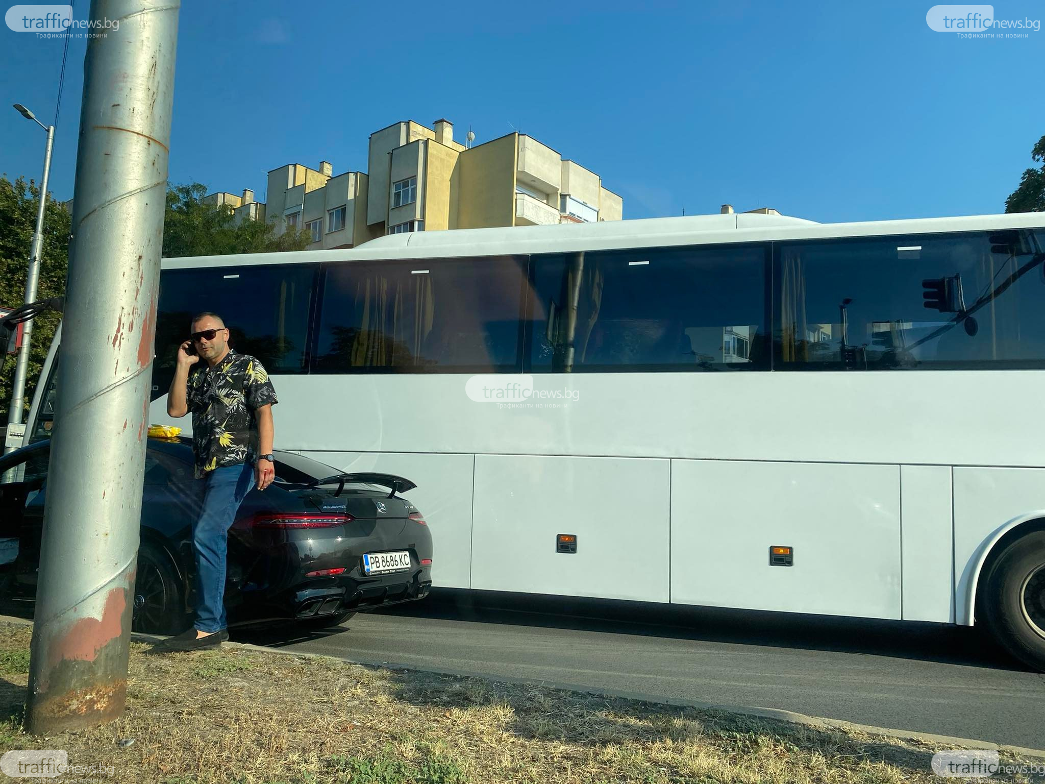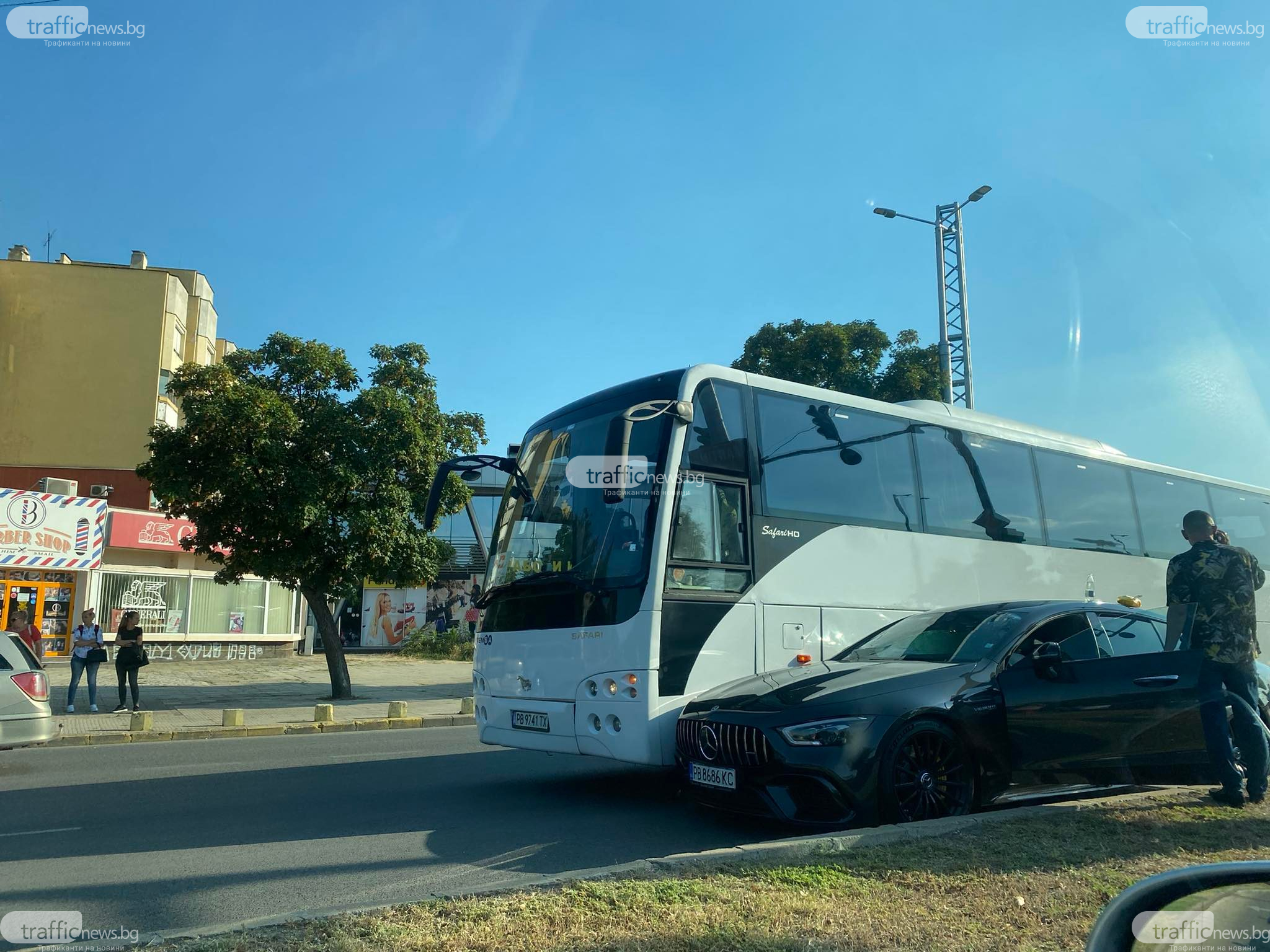 Мощният автомобил и рейсът са се „целунали”, след като мерцедесът е направил обратен завой, споделя очевидец. В следствие на него, идващият от бул. „Мария Луиза” автобус буквално го е затиснал до бордюра.
