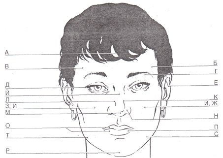 А . По средата на челото. Буен нрав, склонност към жестокост. Трябва да се пази от нещастен случай, от злополука на средна възраст.