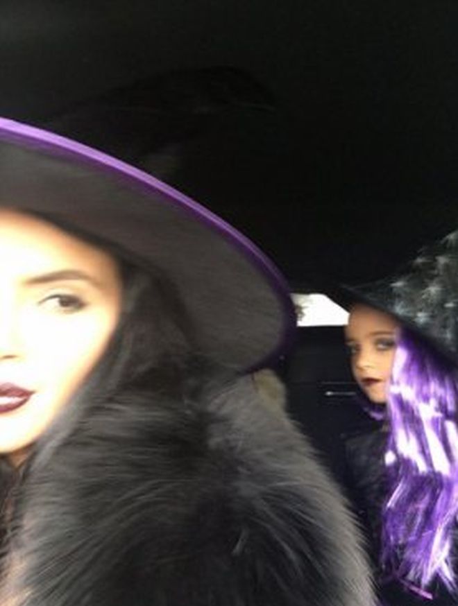 Изпълнителката и нейната дъщеря Марая са се маскирали като вещици и са документирали момента със снимка.
