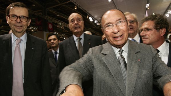 88-годишният сенатор (на снимката долу на преден план вдясно), който е собственик на в. "Фигаро" сега е разпитван в Нантер, близо до столицата.