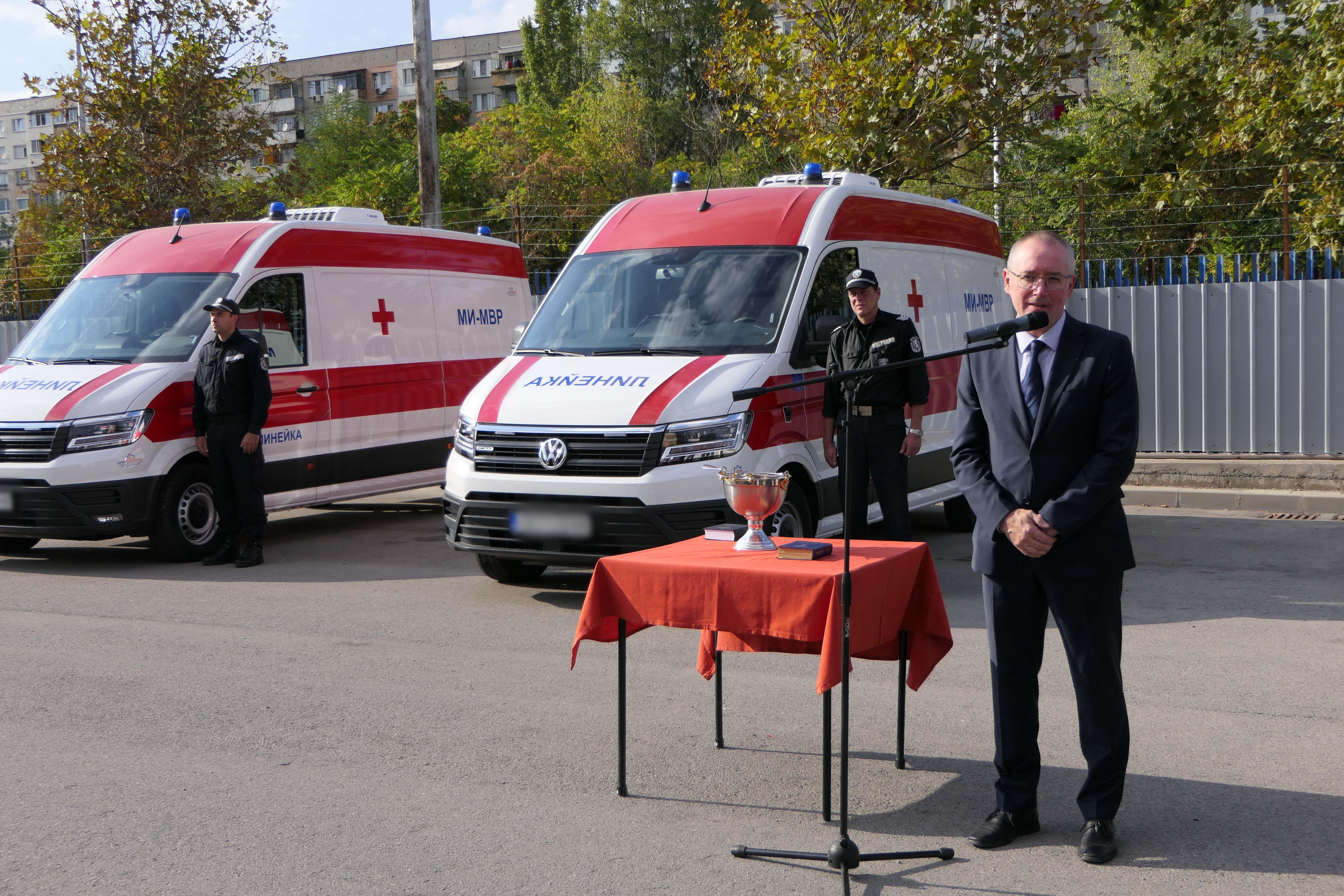 Представителите на МОМ, министър Маринов, директорът на института проф. д-р Ненчо Смилов, д.м., и началникът на политическия кабинет на вътрешния министър Михаил Златанов разгледаха отблизо линейките и оборудването в тях. Техниката е предоставена от МОМ България за нуждите на Медицински институт – Министерство на вътрешните работи на Република България по проект, изпълняван от МОМ в рамките на Механизма за спешно подпомагане.