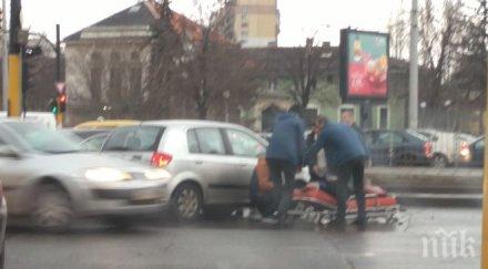 При сблъсъка единият мъж е получил травми на главата. На място са пристигнали полиция и линейка.