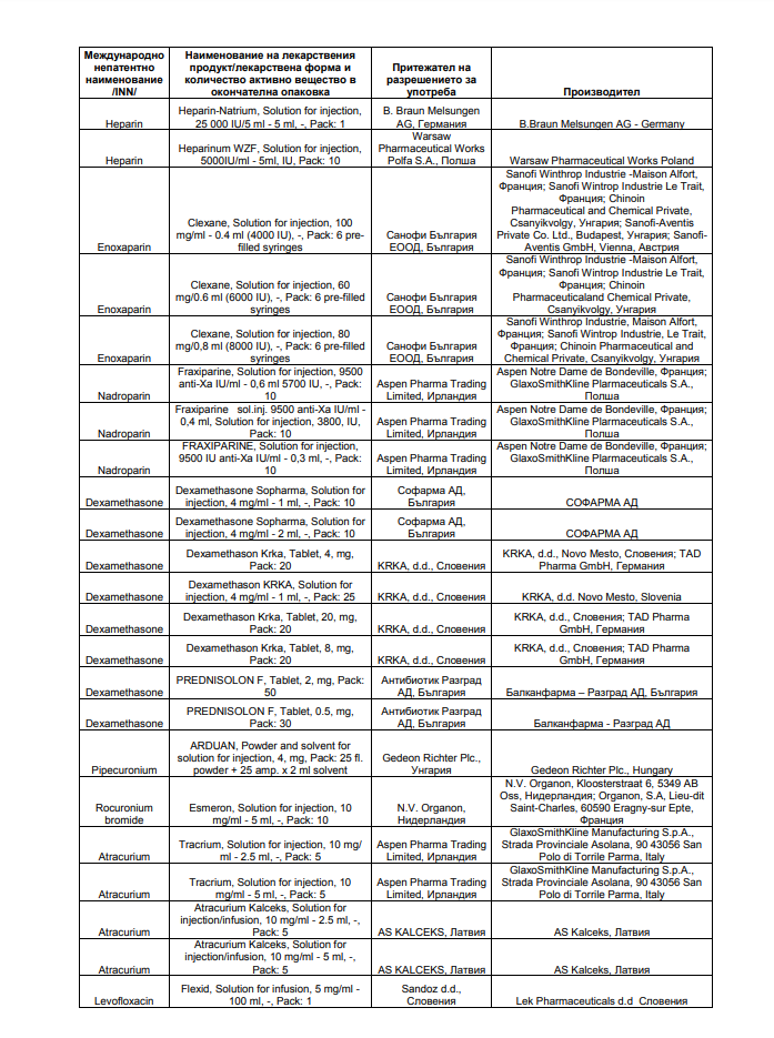 Резултатите от извършените от ИАЛ проверки по сигнали за недостиг от лекарствени продукти, осъществени през м. ноември до настоящия момент показват, че лекарствените продукти с посочените по-горе международни непатентни наименования са предмет на паралелен износ от територията на Република България за други страни, в количества, създаващи предпоставки за потенциален недостиг от лекарствените продукти за българския пазар. Посочва се, че независимо от законния характер на извършваната дейност, износът на лекарствени продукти, използвани в процеса на лечение на български пациенти с COVID-19 в период на увеличено потребление, нарушава крехкия баланс между доставените на територията на страната лекарствени продукти и повишените нужди от тях за задоволяване на здравните потребности на населението.