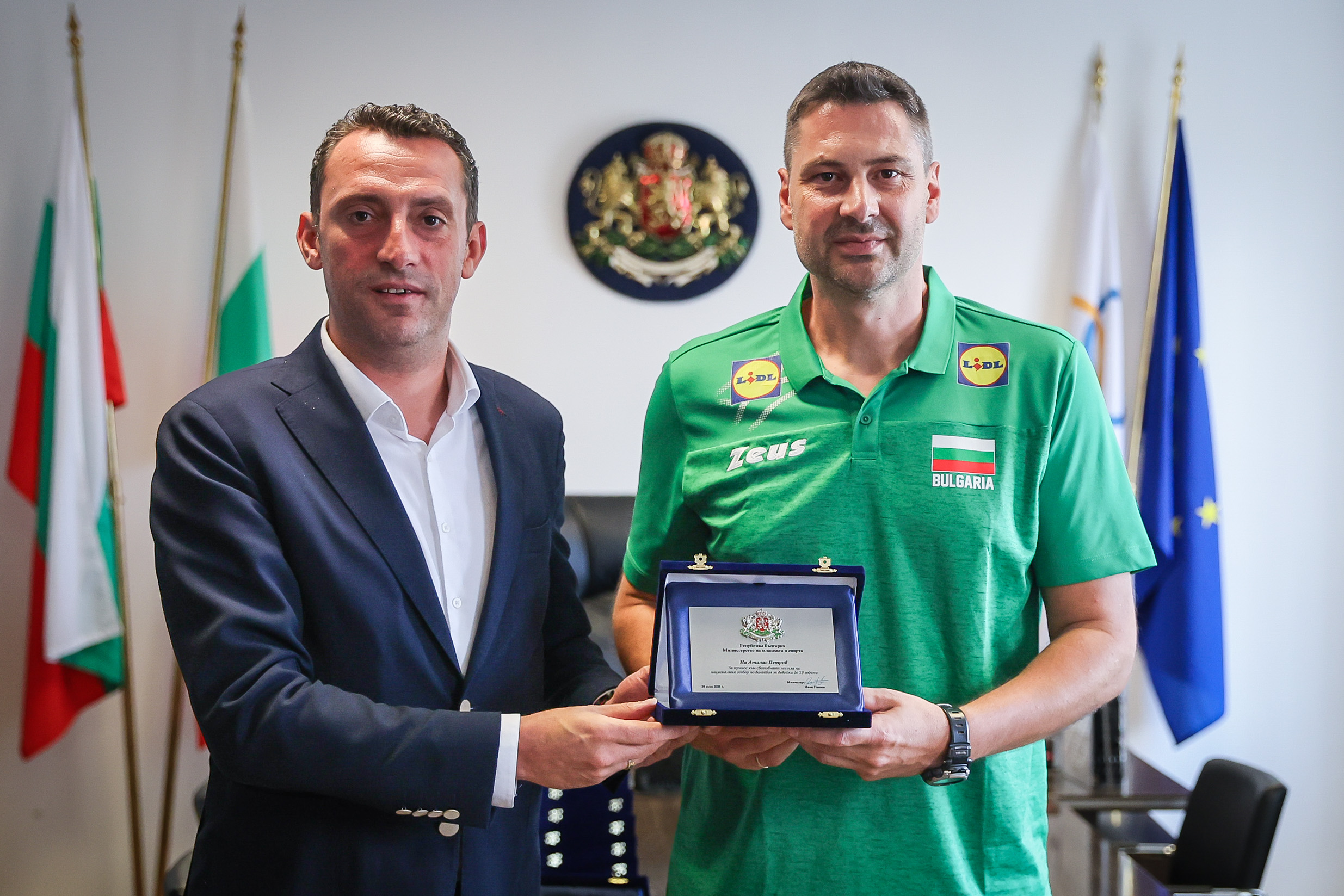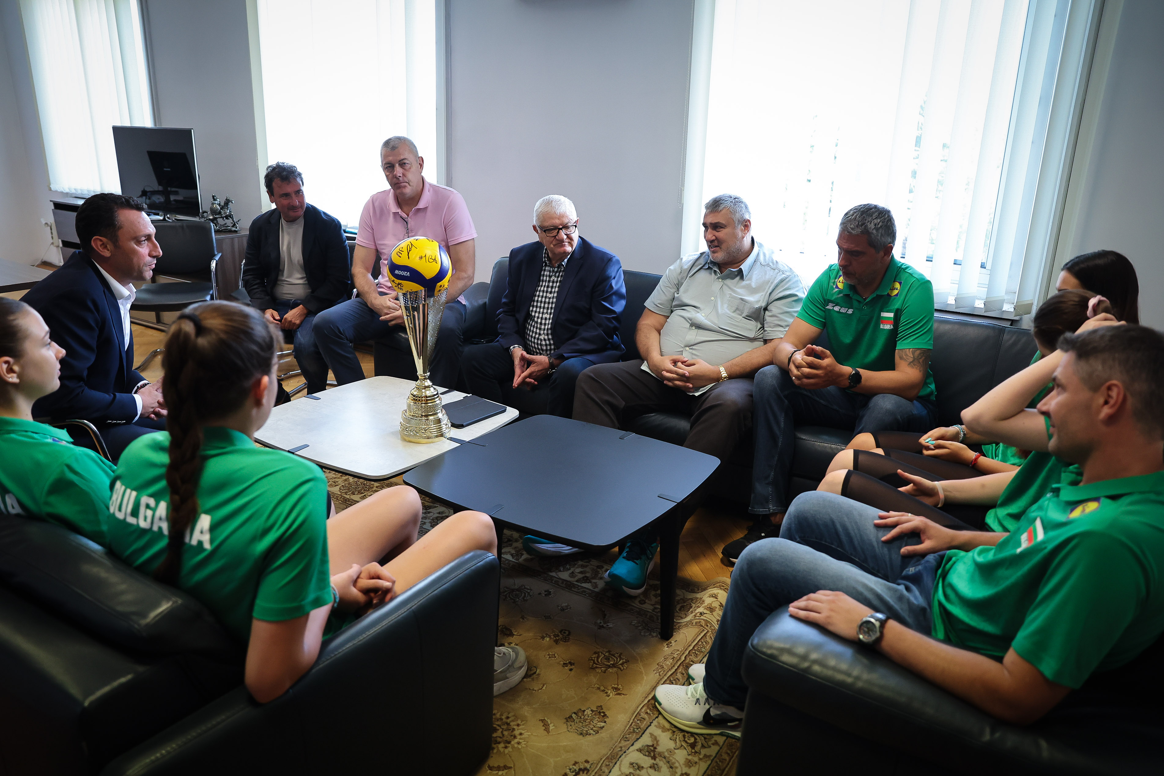 На събитието присъстваха още заместник-министърът на младежта и спорта Димитър Георгиев, президентът на БФВ Любомир Ганев, вицепрезидентът Петър Кънев, членът на УС Димо Тонев и мениджърът на отбора Евгени Иванов. Президентът на федерацията подчерта значимостта на историческата титла, а треньорът Петров изрази благодарност за подкрепата от страна на министерството.