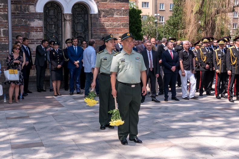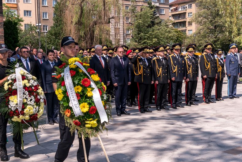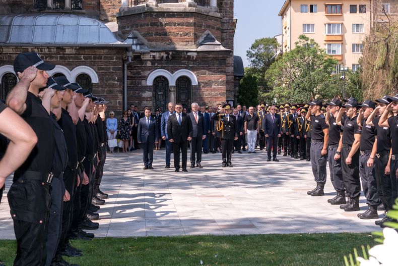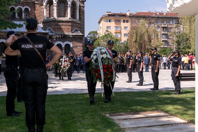 С едноминутно мълчание почит в памет на колегите засвидетелства ръководството на МВР, директори на дирекции и бивши ръководни служители на ведомството, представители на дипломатическия корпус у нас. Министърът на вътрешните работи, главният секретар на МВР и служители поднесоха венци пред паметника на загиналите полицаи в градинката пред храм „Св. Седмочисленици“.