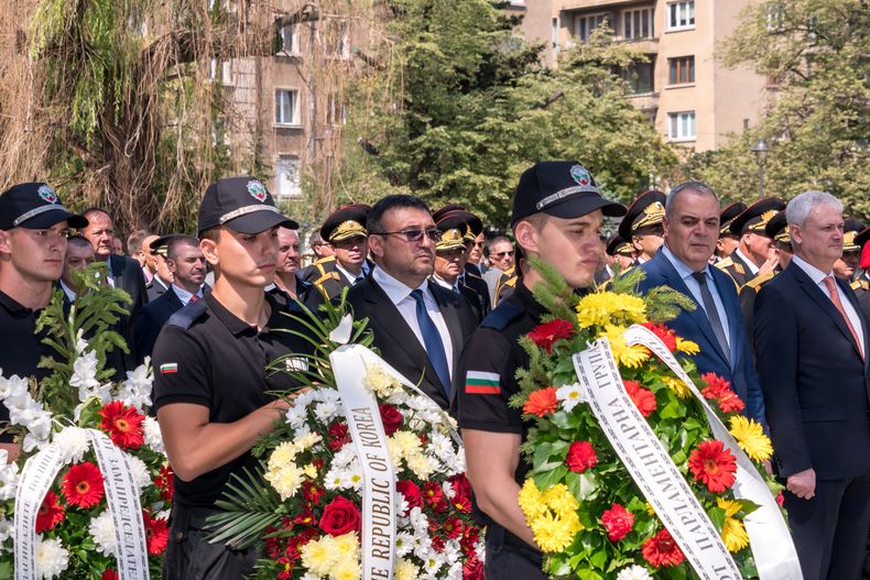 Министър Маринов и главният секретар поднесоха венци на загинали полицаи (СНИМКИ)