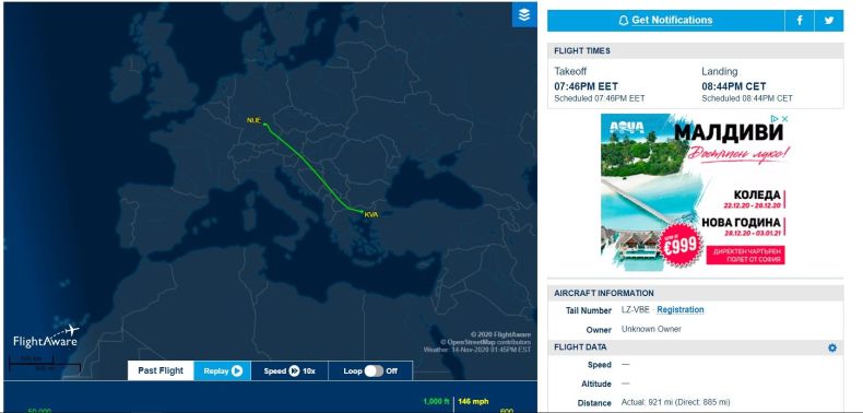 В събота обаче самолетът е осъществил полет от Кавала до Нюрнберг, Германия, сочат сайтовете за проследняване на въздушния трафик. Според непотвърдена официално информация от края на лятото самолетът е преминал във владение на сина на Черепа - Антон Божков чрез новосформирана офшорна компания.
