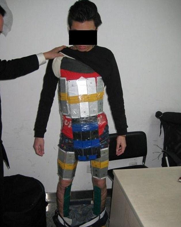 Един отключен 16GB iPhone 6 струва около 18% от средната годишна заплата в Китай. Доста хора се опитват да прекарат смартофони през границата по начина, който е ползвал мъжа на снимката, но той наистина е прекалил с количеството. Служителите видели странната му походка и го претърсили.