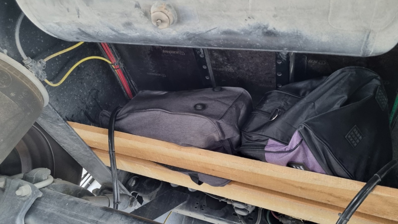 При извършената проверка се установява, че под шаситата на превозните средства върху две дървени греди са укрити по два пътнически сака, пълни с общо 23 полиетиленови плика.