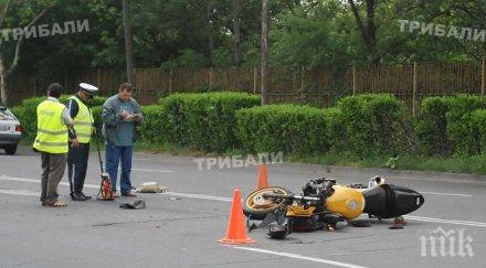 30-годишна неправоспособна мотористка бере душа след удар с Пежо