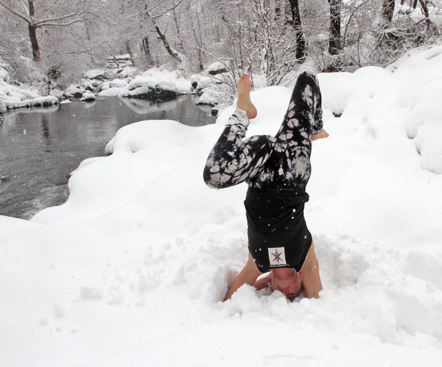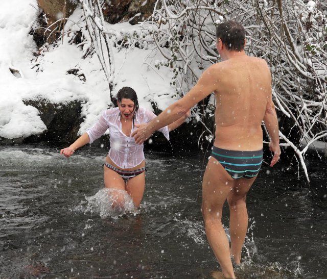 МНОГО ГОРЕЩИ СНИМКИ НА СТУДА: Йоги се гмурнаха голи в река на минус 3 градуса