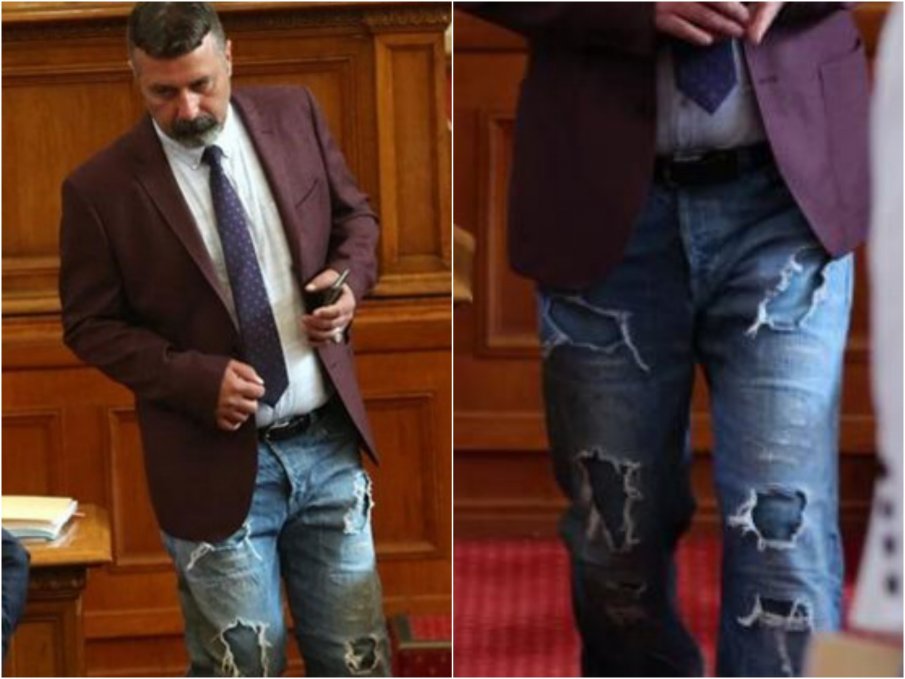 И докато все пак моделът на тоалета е въпрос на вкус, елементарното уважение към институцията изисква парламентаристът поне да бъде опрятен. Точно това правило сгази членът на ръководството на "Има такъв народ" Филип Станев преди 5 години, когато партията на Слави нахлу в политиката. Депутатът сценарист се появи в пленарната зала с много съдрани по цялата им дължина дънки, които вероятно е намерил за модерни. От други групи подали оплакване до председателката Ива Митева и тя го наказа със забележка.
