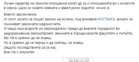 И нещо към видните ни законодатели: преди да внесете поредното ви недоразумение-законопроект, звъннете в Юридическите факултети и питайте, бе! Не е срамно да не знаеш.