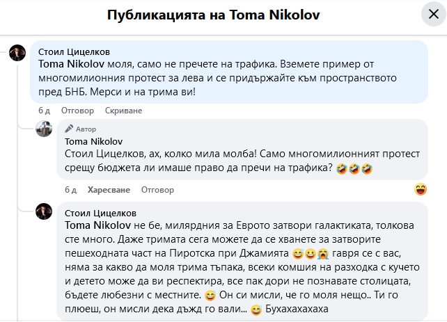 Излишно е да казвам, че го блокирах веднага след втория, НЕ позволявам никой на стената ми да обижда други коментиращи.