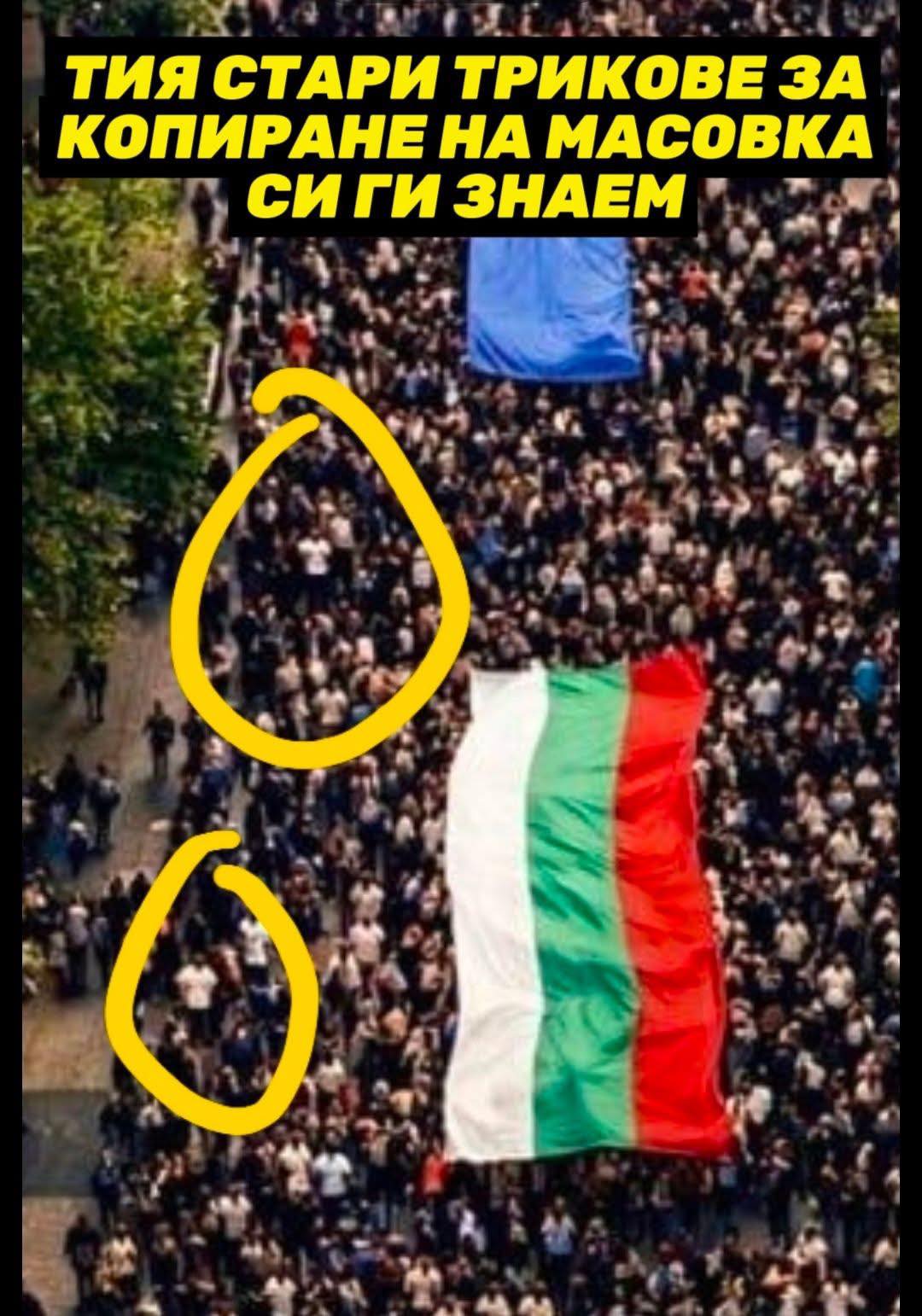 По-големият проблем за коалицията ППДБ обаче е опитът им да покажат, че е имало много хора на шествието в центъра на София. Кандидат-депутати на коалицията ударно разпространяват снимка от въздуха, на която се вижда голяма група от хора, държаща знамената на България и на Европейския съюз.
