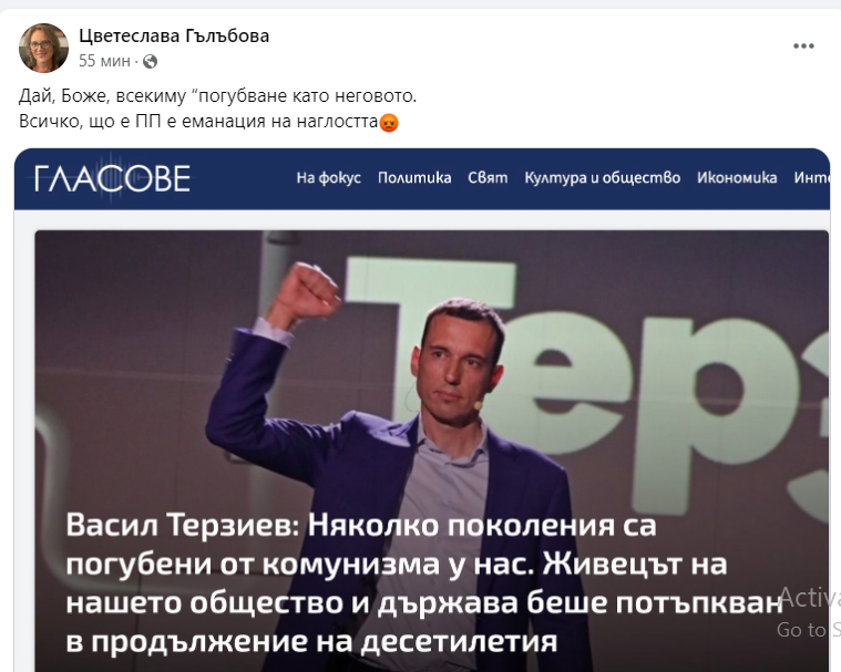 "Дай, Боже, всекиму "погубване" като неговото". Всичко, що е ПП е еманация на наглостта", ядоса се и Цветеслава Гълъбова от "Левицата".