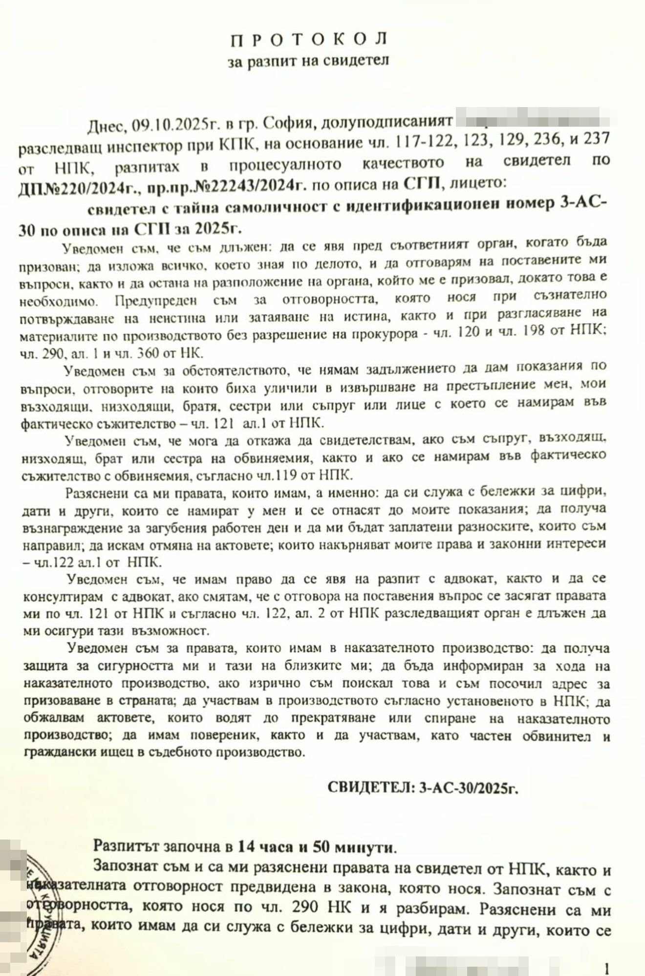свидетел с тайна самоличност с идентификационен номер 3-АС-