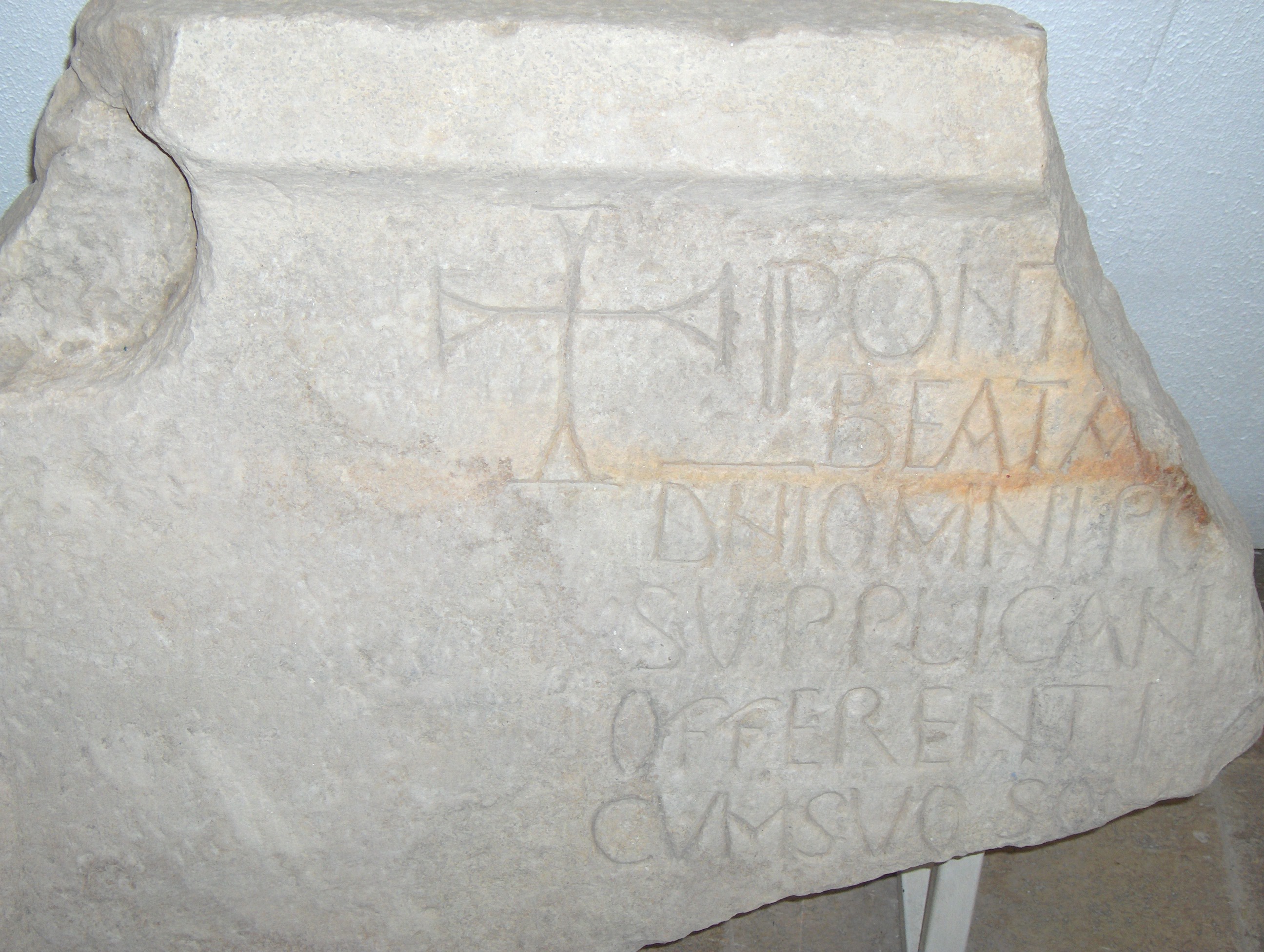 В експозицията на музея във Велики Преслав се съхранява фрагмент от изключително важен и уникален каменен надпис. Преди много години той е открит случайно някъде в централните части на старата столица. Запазен е само левият горен ъгъл от голяма стела, която някога се е намирала над входа на огромна катедрала. Текстът е на средновековен латински език и е изрязан с красиви букви. За съжаление от съдържанието е оцеляло много малко. Все пак ясно се разбира, че храмът е бил издигнат през понтификата (управлението) на римски папа с незапазено днес име. Учените са единодушни, че този надпис е съобщавал за строежа на една от първите християнски църкви, поръчана от апостолическата мисия, изпратена в България през есента на 866 г. от папа Николай І.