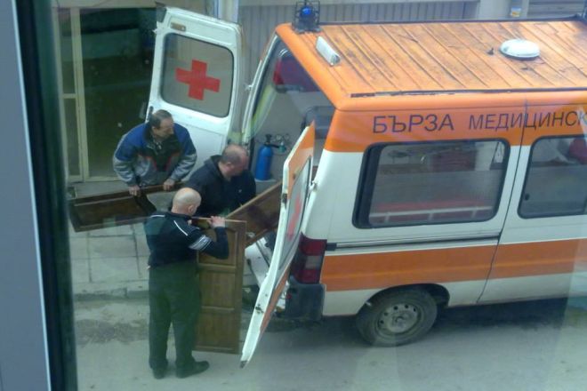 Наглост! Линейка се превърна в камион за преместване (снимки)