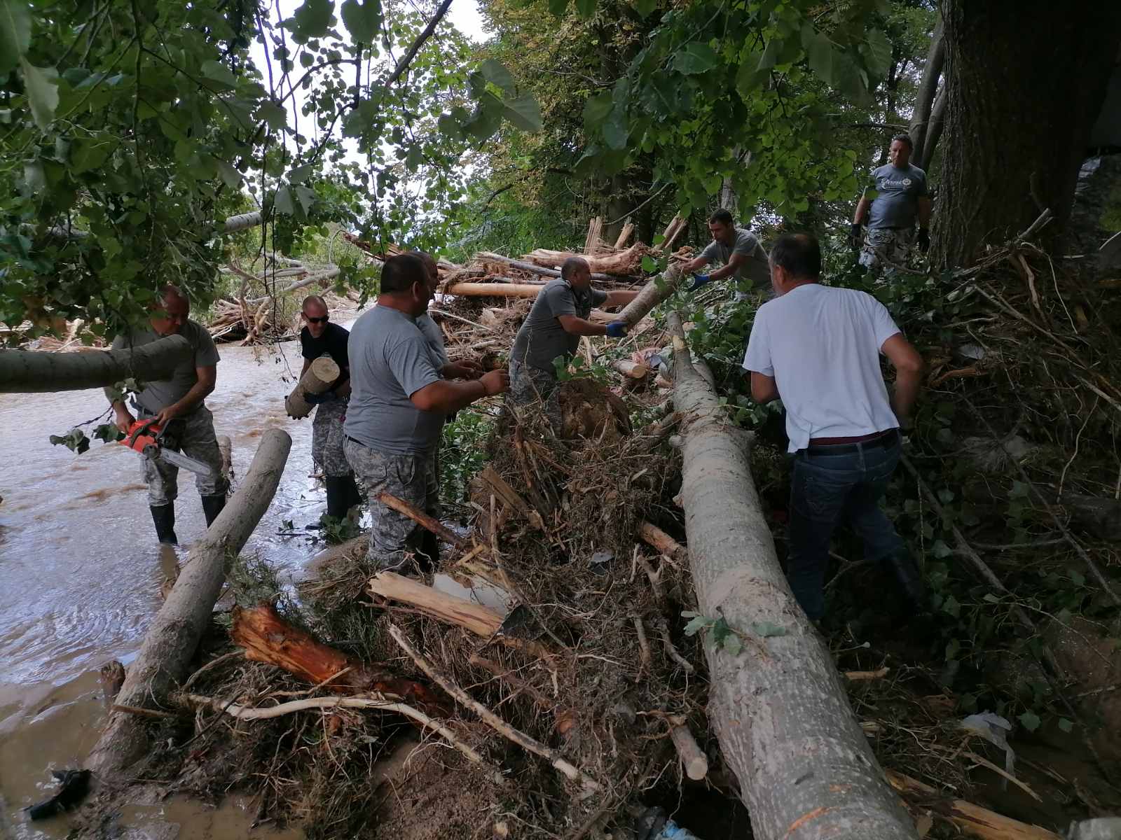 Над 100 военнослужещи от Сухопътните войски и Военновъздушните сили (ВВС) отстраняват щетите по обществените сгради и улици.