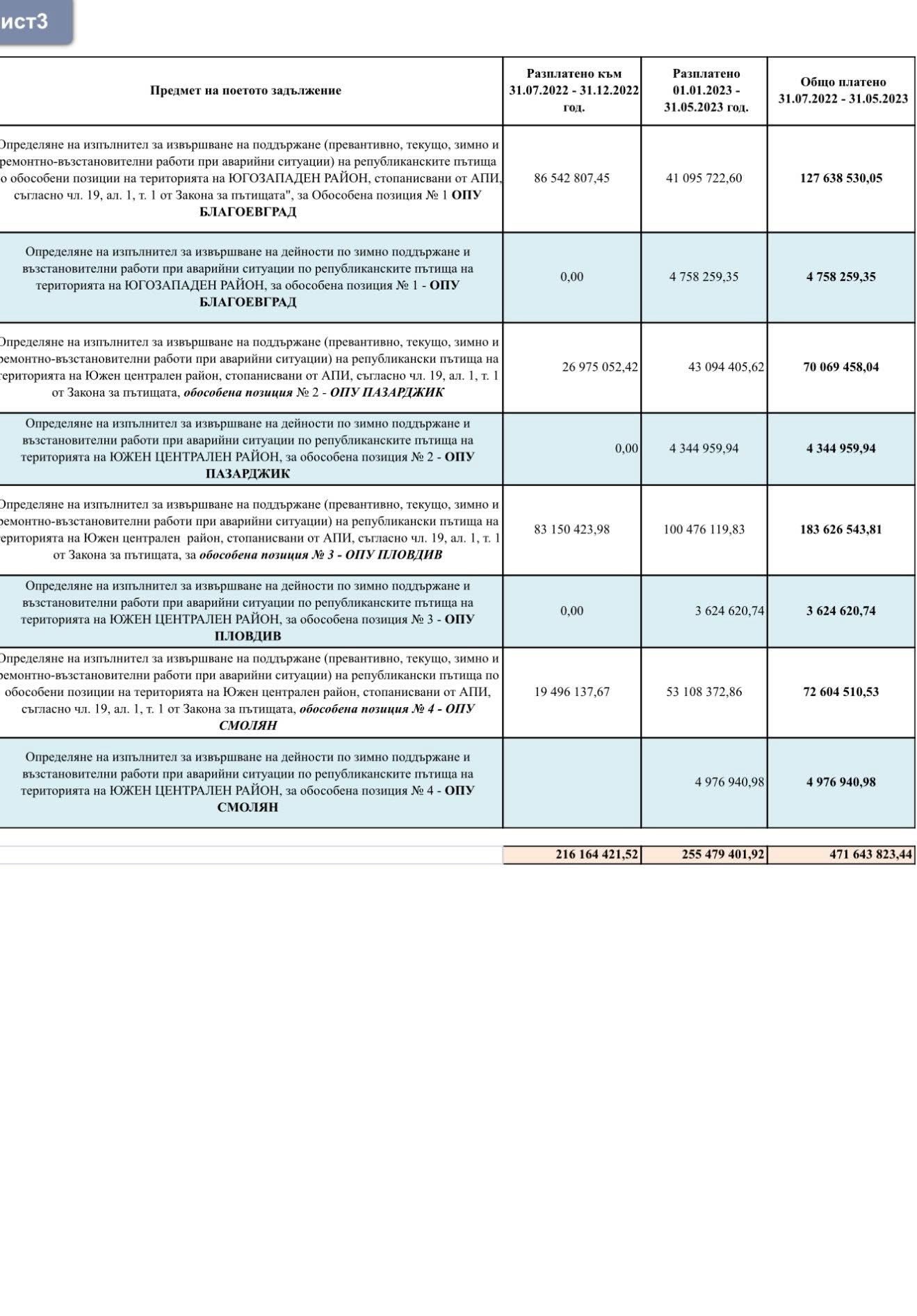 - Отделно уж порочните договори за текущ ремонт и поддържане - от сутрин до вечер ги громяха в тв ефира. И хоп - успоредно с това почти 500 млн. лв. по платени пак на същата "фирма с чувалите" (както я наричат те).