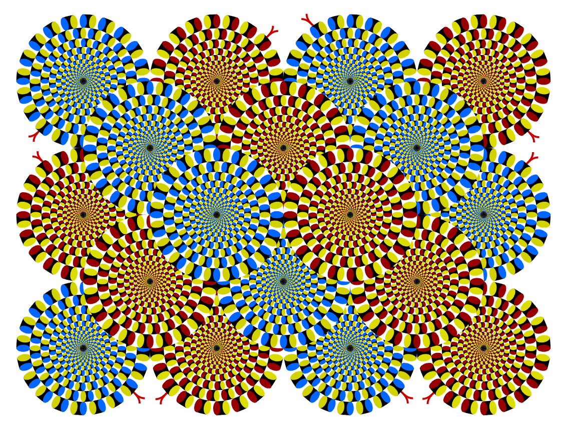 Няма да повярвате, но тези картинки са статични изображения, а не анимация. Автор на тези своеобразни илюзии е японецът Акиоши Китаока. Той е професор във факултета по психология в Ritsumeikan University, Киото, Япония, спeциализирал се по въпрoсите, свързани със зрителните възприятия на човек.