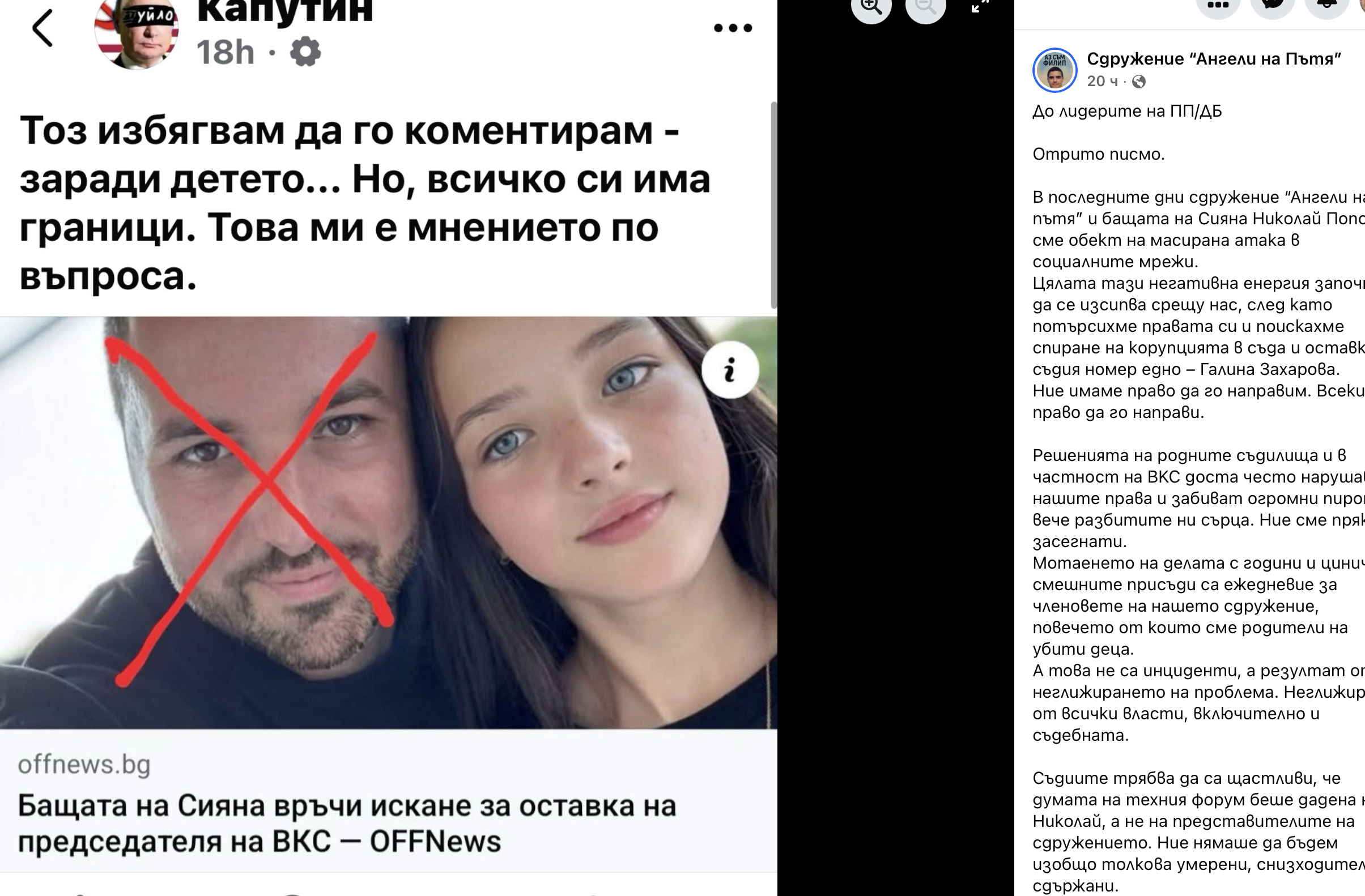 „В последните дни сдружение “Ангели на пътя” и бащата на Сияна Николай Попов сме обект на масирана атака в социалните мрежи.