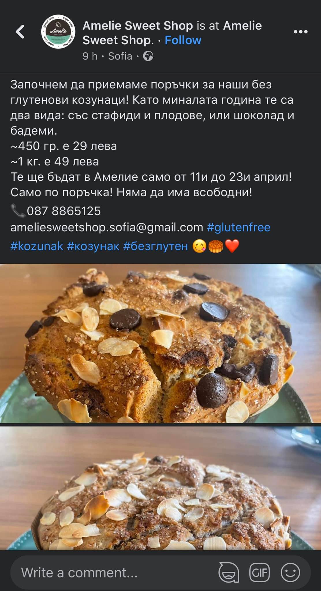 "Юруш на козунаците! Един килограм козунак без глутен – 50 лева в сладкарницата на премиершата Линда.