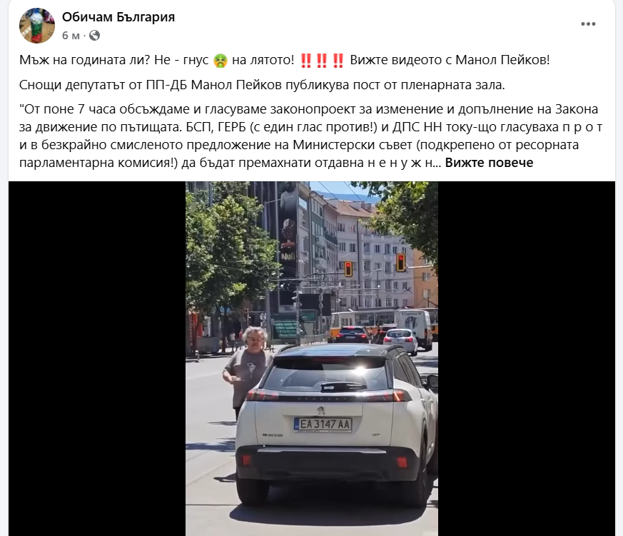 Оказа се, че наблюдателен софиянаце е спипал Манол Пейков в неудобна за един народен представител ситуация.