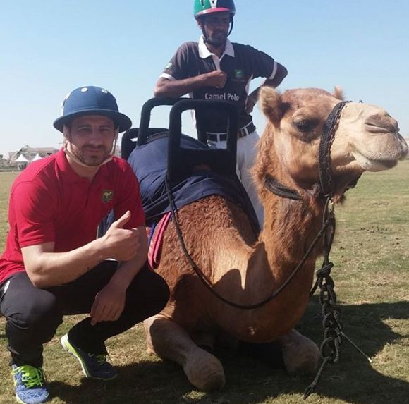 Футболистът получи уроци по камилско поло и не пропусна да се похвали в социалната мрежа.