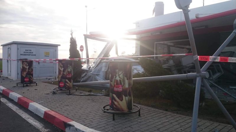 Според тях водачът най-вероятно е карал с превишена скорост. Загубил е управление и се е врязал в бензиностанцията.