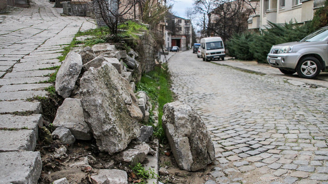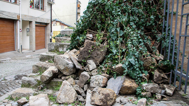 Освен тази стена, още няколко каменни огради по улица "Волга" са се срутили в последните часове.