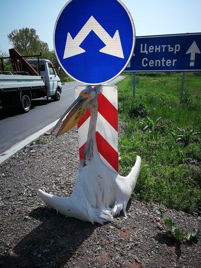 Птицата е забелязана в петък рано сутринта от дежурен екип на "Пътна полиция", след което е подаден сигнал до съответните органи и до Сдружение "Зелени Балкани". "Резултатът от извършената аутопсия на пеликана не показва умишлено умъртвяване", съобщи д-р Христина Клисурова от Спасителния център за диви животни в Стара Загора.