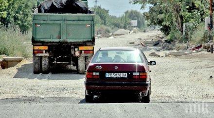 На някои места, където асфалтополагащата машина е спирала, се получили бабуни. Изравняваме настилката, за да подготвим пътя за окончателното асфалтиране, обясни бригадирът. Това потвърди и главният инженер Йордан Калев.