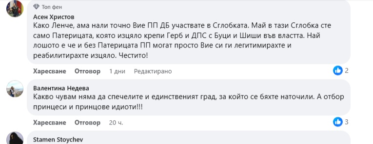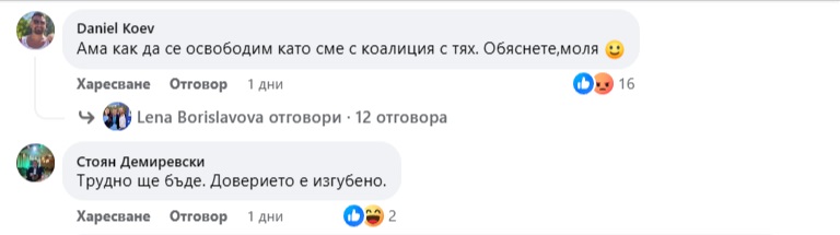 И макар Лена да е забравила, феновете и бившите симпатизанти на "Промяната" не само че не са, но и не могат да простят целувката с ГЕРБ и ДПС. И се погрижиха да й припомнят с множество коментари под поста й.