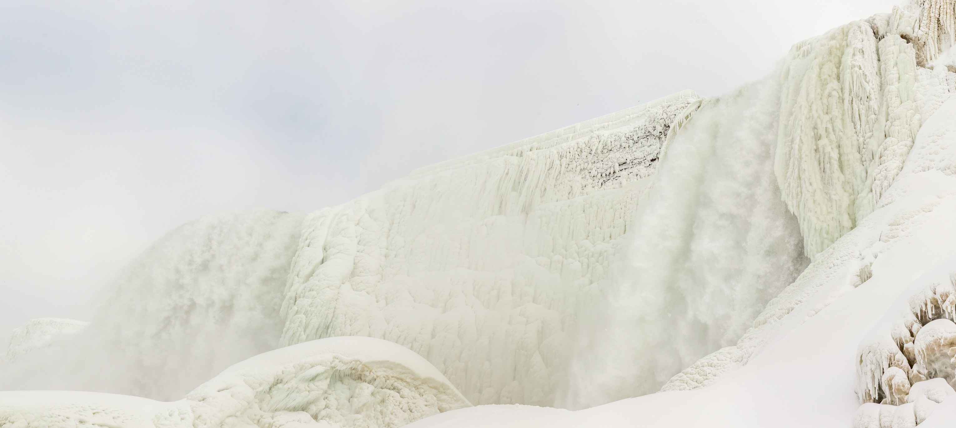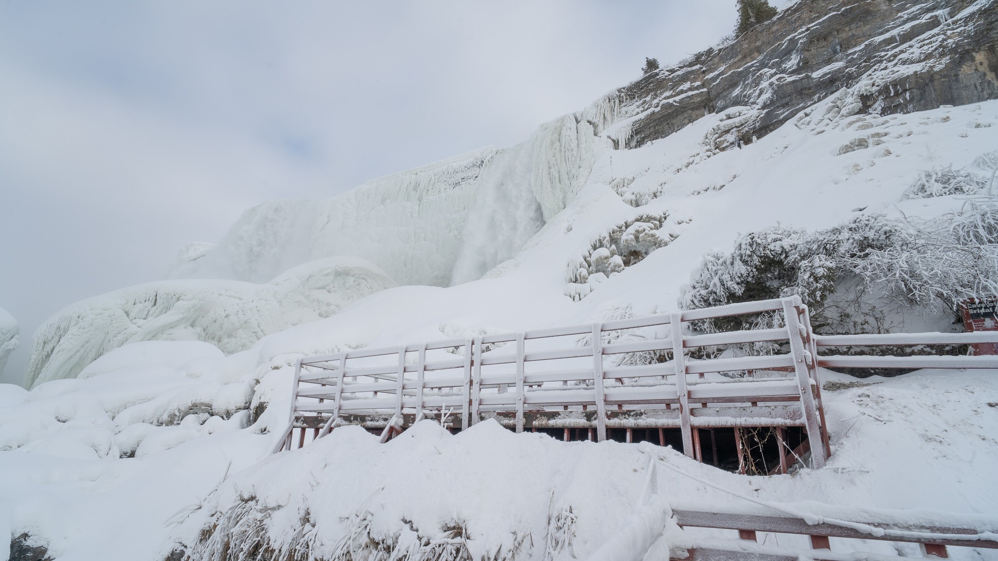 Ниагарският водопад почти никога не замръзва изцяло, но през много студени зими се образува т.нар. ice bridge („ледена завеса“) — масивни натрупвания от лед, висулки и замръзнали пръски, които създават илюзията, че водата е спряла. В действителност зад тази ледена „обвивка“ продължават да преминават хиляди кубически метра вода в секунда.