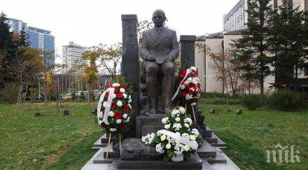 Никой не остави цветя или венци на паметника на Симеон Радев край НДК.