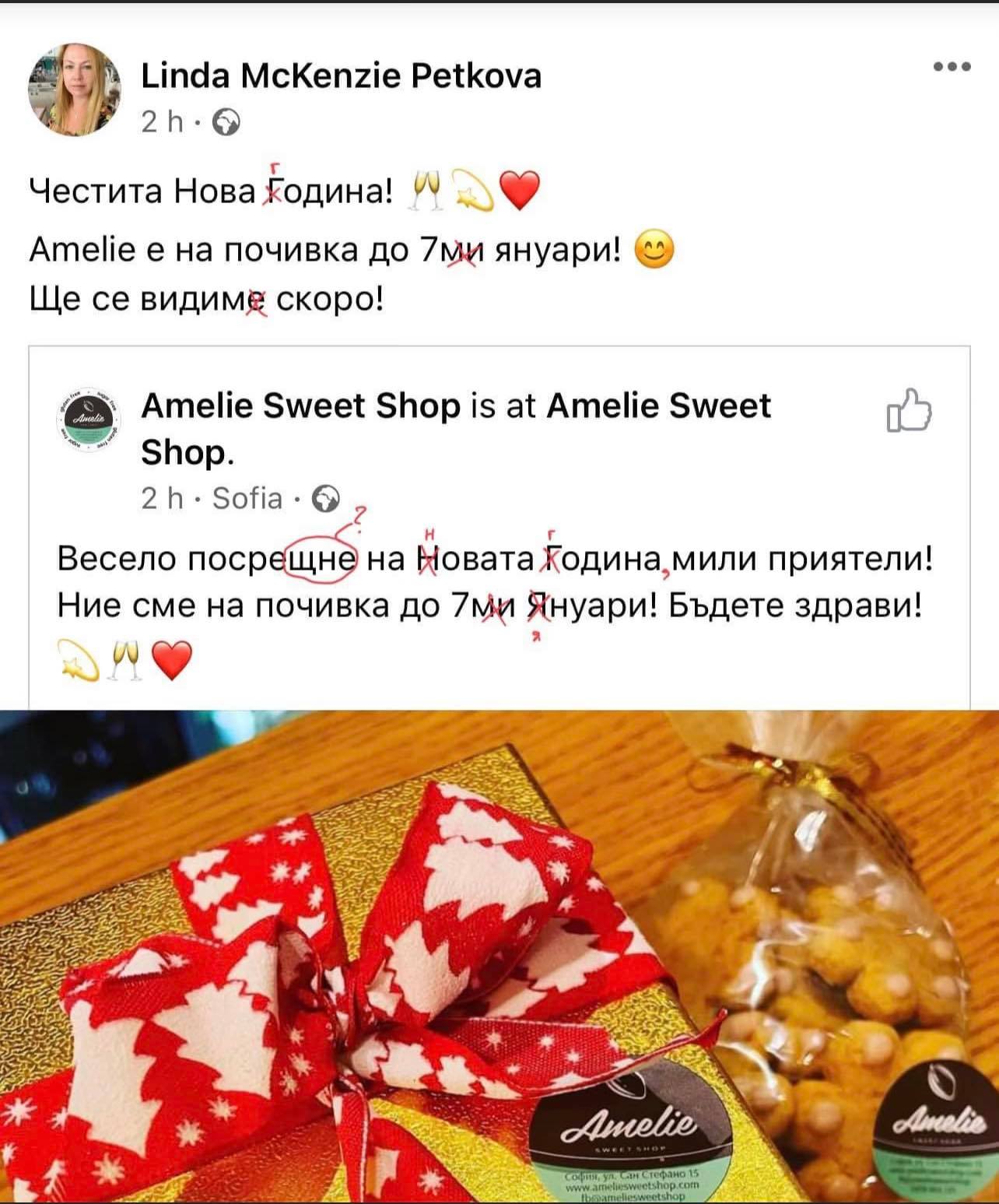 Нова неграмотна честитка пусна във "Фейсбук" съпругата на премиера Кирил Петков - Линда. Във всяко изречение тя има по една правописна грешка.