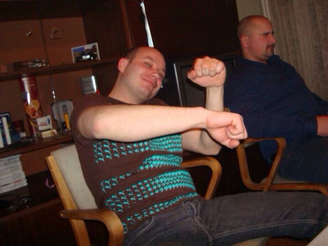 На една от снимките търновския депутат Иван Димитров е лъснал по гол тумбак. Голотата му обаче не го притеснява, въпреки че бузите са му поруменели.