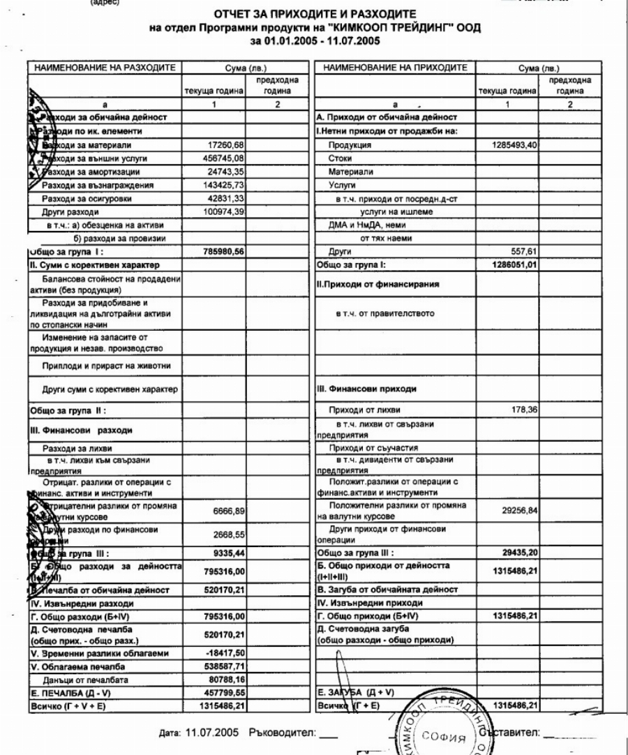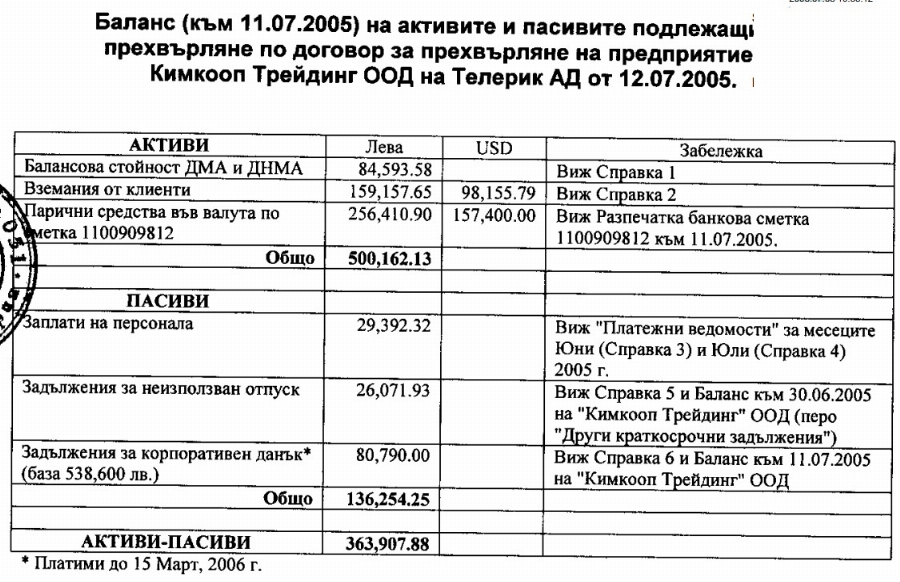 Това са получени директно активи на стойност 500 хил. лв. от фирмата-майка на дъщерната фирма. Отделно 1 315 486 лв. са описаните приходи и печалба за първите 7 месеца на 2005 г. на отдел "програмни продукти" на "КИМКООП ТРЕЙДИНГ", който отдел се превръща в "Телерик".