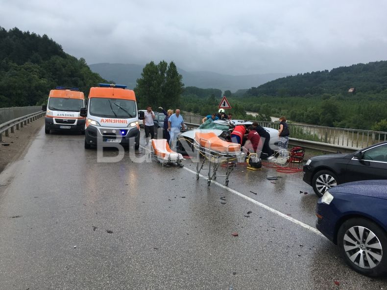 Тежката катастрофа, която окървави международния път Е-79 край Мездра, е била толкова силна, че първата кола е напълно размазана, а в нея са останали затиснати двама души, предава Булнюз.бг. Три коли са се размазали в турски ТИР на моста над река Искър до железничарския град.