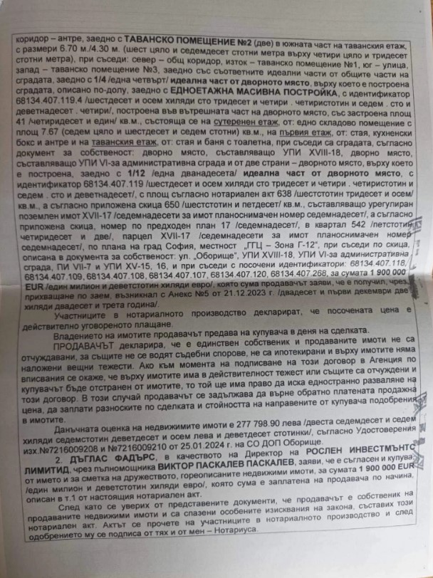 Сделката е сключена в кантора на нотариуса И.Д, за който се твърди, че е „нотариусът на Нотариуса“ и през него са минали всички сделки на Божанов.