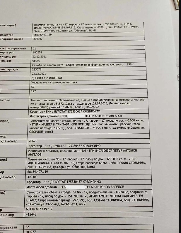 Антонов-“Пипо“ продава жилището, въпреки, че го е ипотекирал срещу заем от известната фирма за бързи кредити „Кредисимо“. Договорът е от декември 2021 година.
