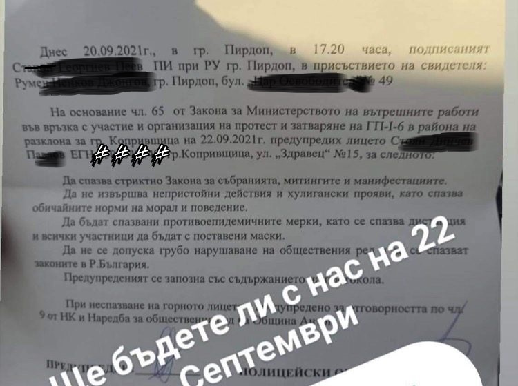 Въпреки мирните им намерения, голяма част от организаторите са били привиквани в МВР, и принуждавани да подписват “предупредителни протоколи”, пише BGReporter.info, като се позовава на свои източници в града. Това става ясно и от публикации във фейсбук на хора, които вече са подписали подобни.