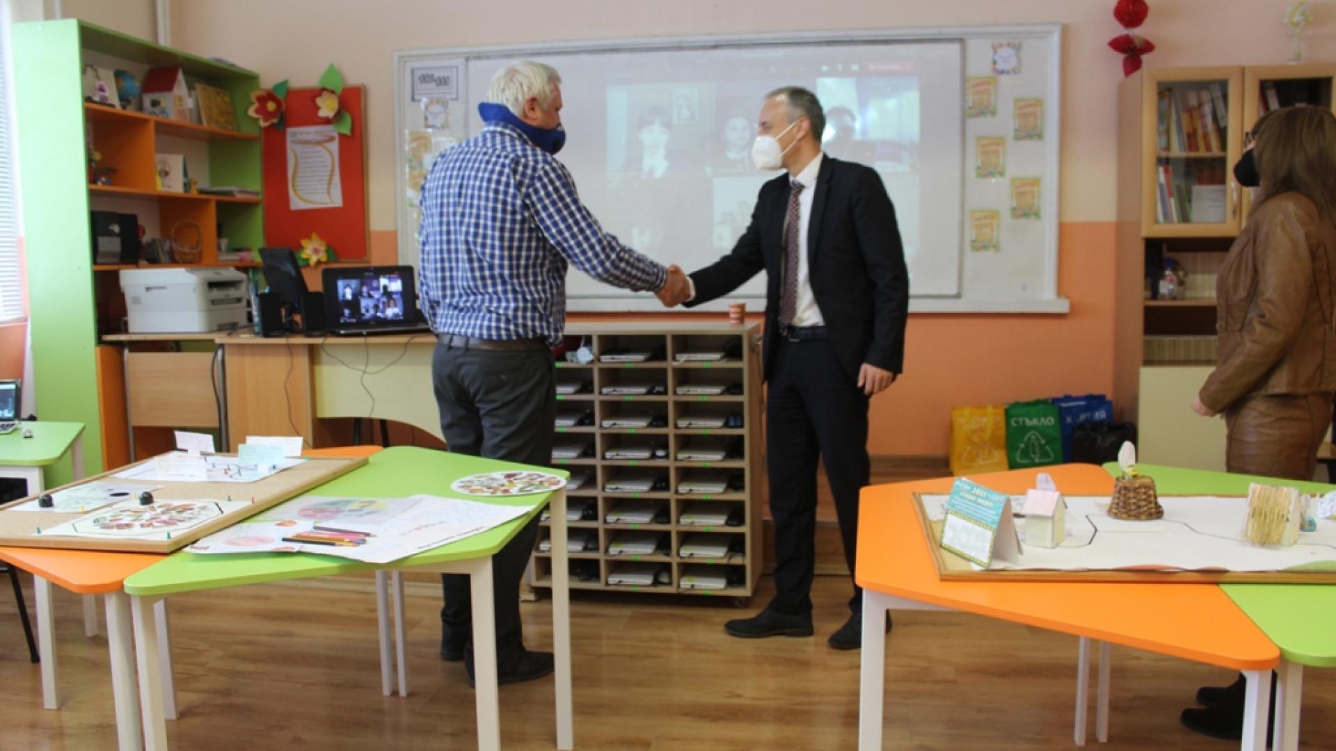 Красимир Вълчев пристигна в СУ "Сава Доброплодни" заради финала на реализацията поредния от STEM центровете по националната програма „Изграждане на училищна STEM среда”.