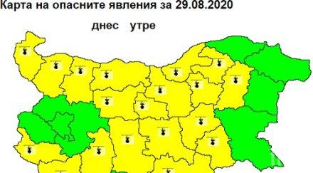 Предупреждението е в сила за областите Монтана, Враца, Плевен, Ловеч, София-област, София, Перник, Кюстендил, Благоевград, Пазарджик, Пловдив, Смолян, Стара Загора, Кърджали, Велико Търново, Габрово, Хасково, Ямбол, Силистра, Разград, Търговище, Сливен, Русе и Шумен.