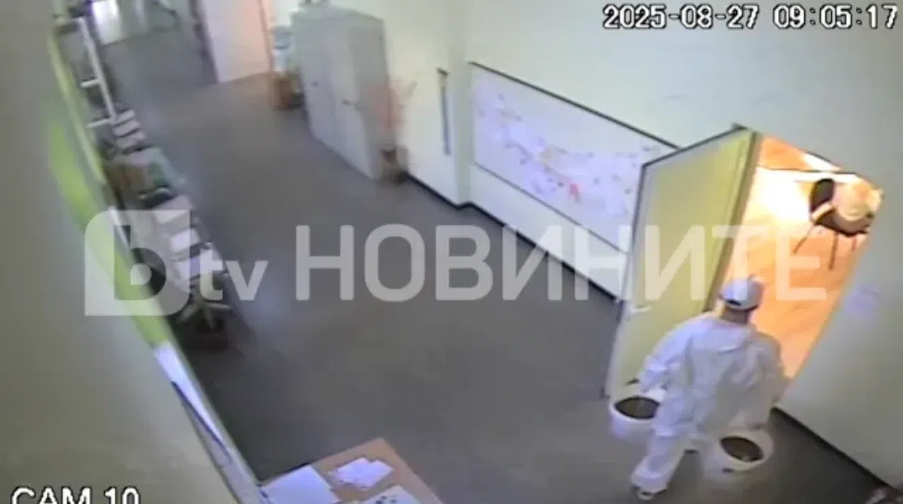Кадри от охранителни камери, с които bTV разполага, показват как мъжът влиза в общинската сграда, носейки две кофи. Стига до една от стаите, след което маха капаците на кофите. Вижда се, че те са пълни с кафяво съдържание.